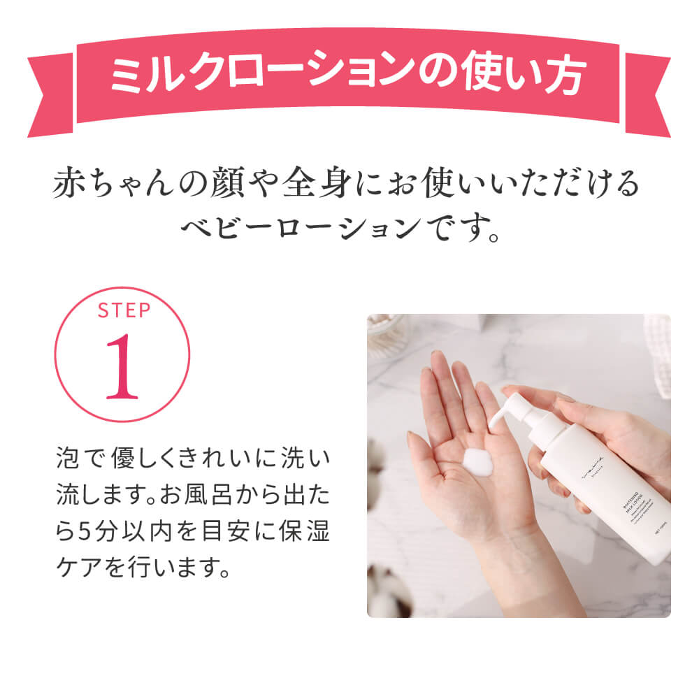 | 商品説明 | ■5つの無添加に加え、102の旧指定成分フリー 敏感な肌の赤ちゃんにでも、お使いいただけるようにアルコール・パラベン・鉱物油・色素・香料と5つの無添加にこだわりました。さらに、化粧品に表示が義務付けられていた使う人によっては稀にアレルギー等の皮膚トラブルを起こす可能性のある102種類の旧指定成分もフリーです。 |
